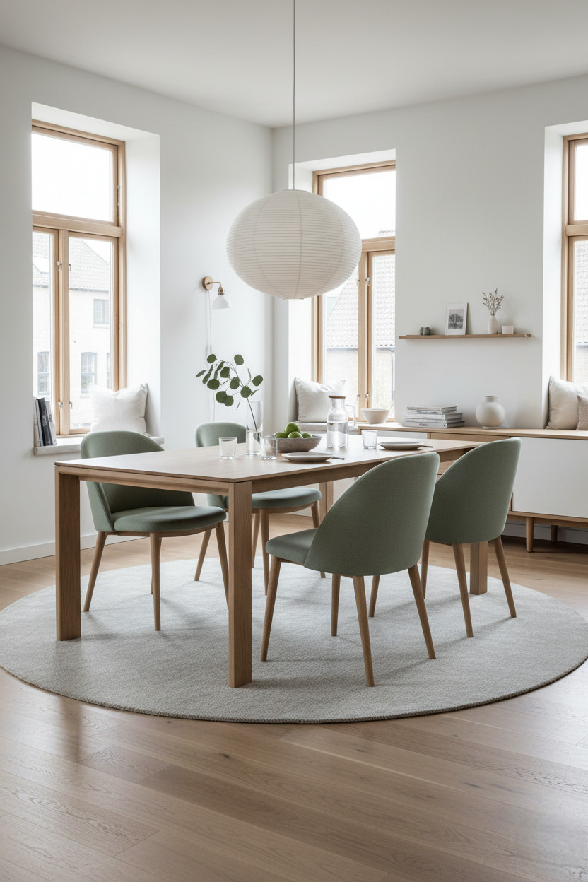 Indem Sie Zonen in Ihrem Raum kreieren, sorgen Sie für Wohnlichkeit und Struktur. Das funktioniert, um große Zimmer zu unterteilen. Kleine Räume hingegen wirken mit diesem Trick größer. Die einfachste Möglichkeit, um die Esszone wie eine eigene Insel herauszuheben, bietet ein Teppich unter dem Esstisch.