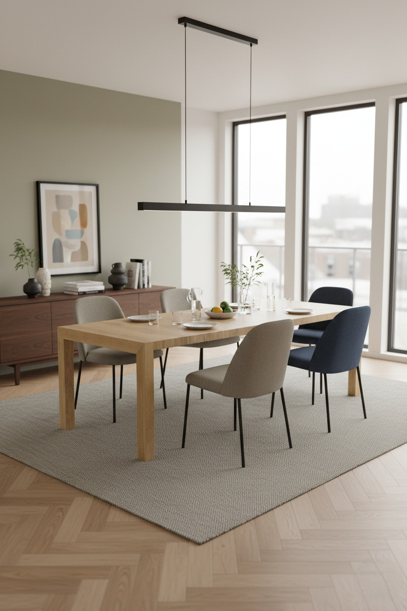 Aber Achtung: Bei wenig Platz oder in kleinen Räumen könnte diese Einrichtungsidee überladen wirken. Vielmehr brilliert sie in einem geräumigen Zimmer mit entsprechend großem Esstisch. Das Modell Farum etwa kommt ausziehbar und lässt sich so auf verschiedene Längen erweitern, im Höchstmaß bis 5 Meter. Das bietet jede Menge Platz für Gäste ebenso wie für dekorative Akzentstühle.