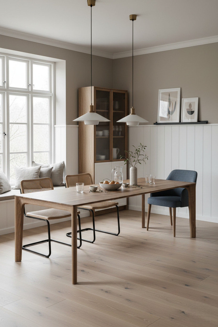 Weitere helle Nuancen wie Off-White, Hellgrau oder Sand sind als Kombitöne eine gute Wahl, aber auch gedämpfte Blautöne greifen den nordischen Vibe schön auf.