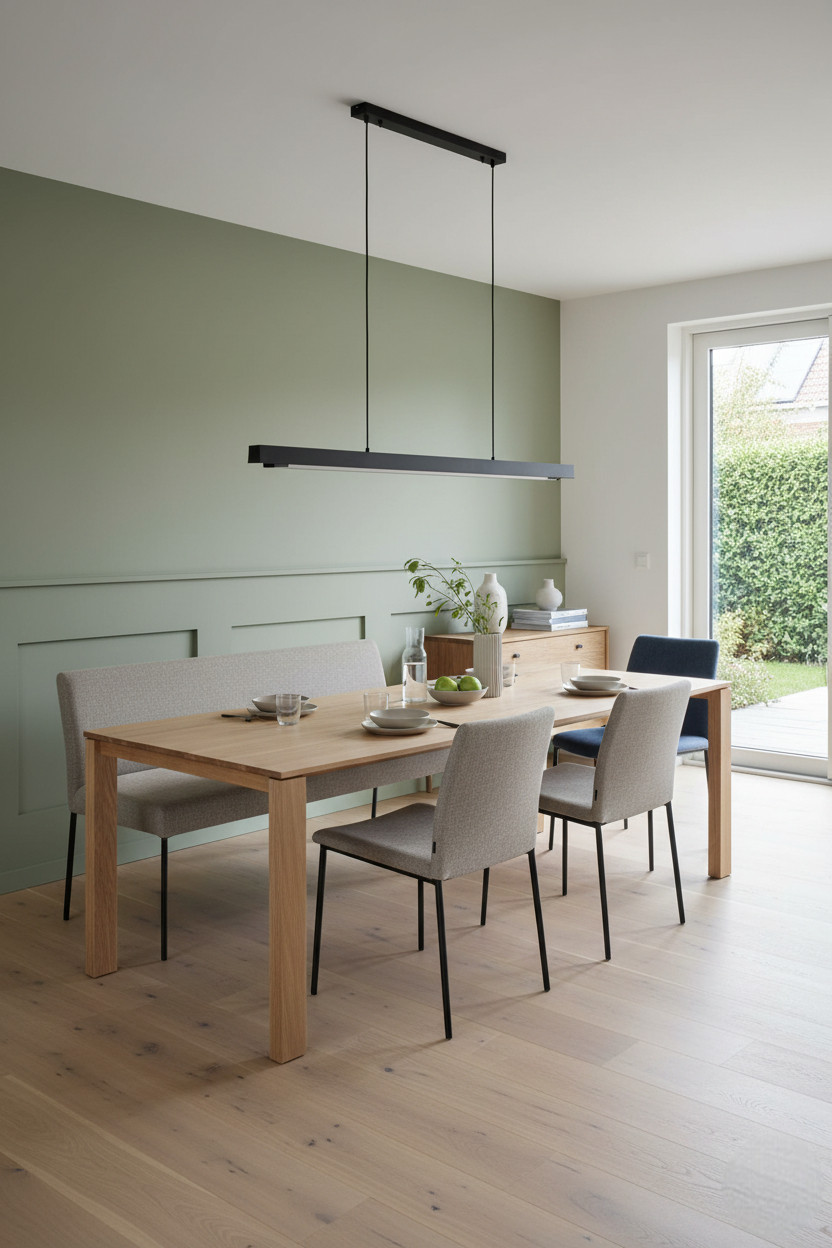 2. Esszimmer mit Holztisch in einem grünen Rahmen