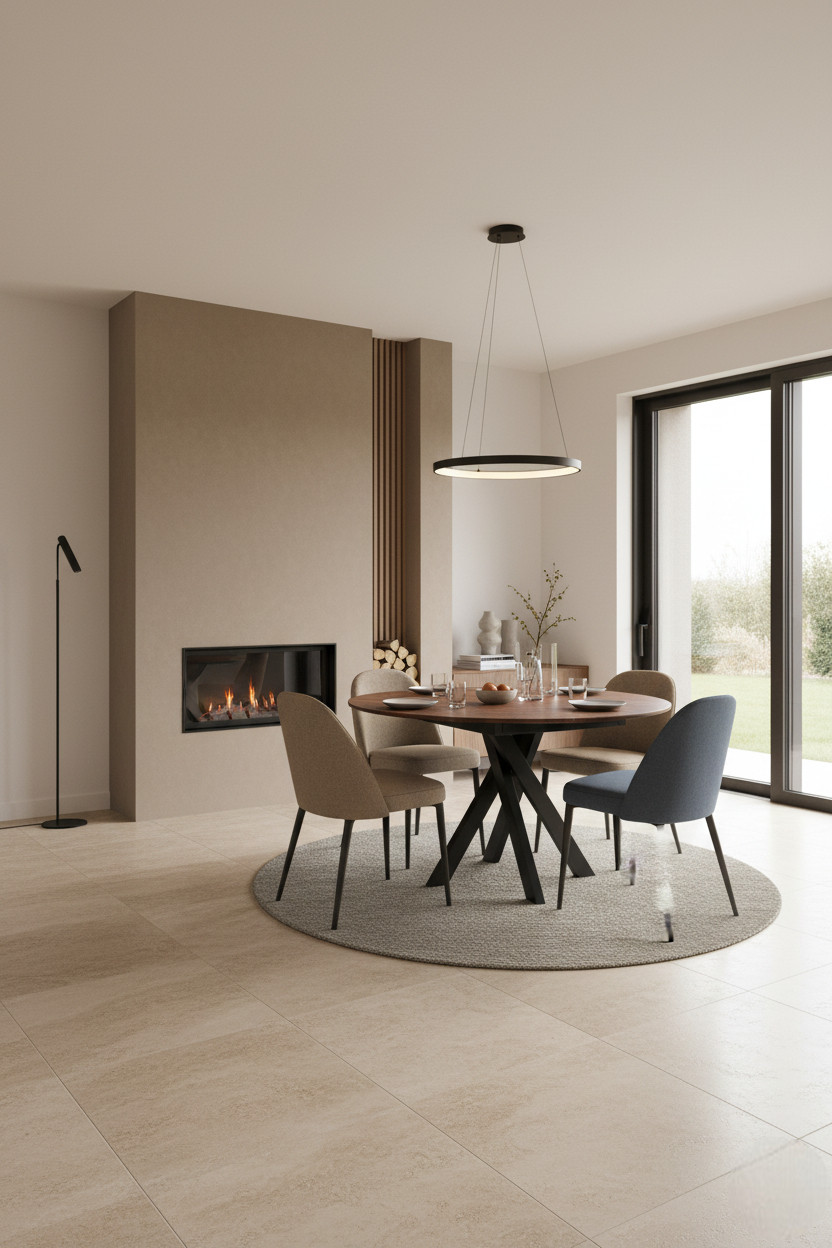 Dazu zwei bis drei weitere starke Details im Raum, etwa ein Kamin, eine ausdrucksstarke Pflanze oder besondere Fenster, und schon wirkt alles sehr bewusst kuratiert.
